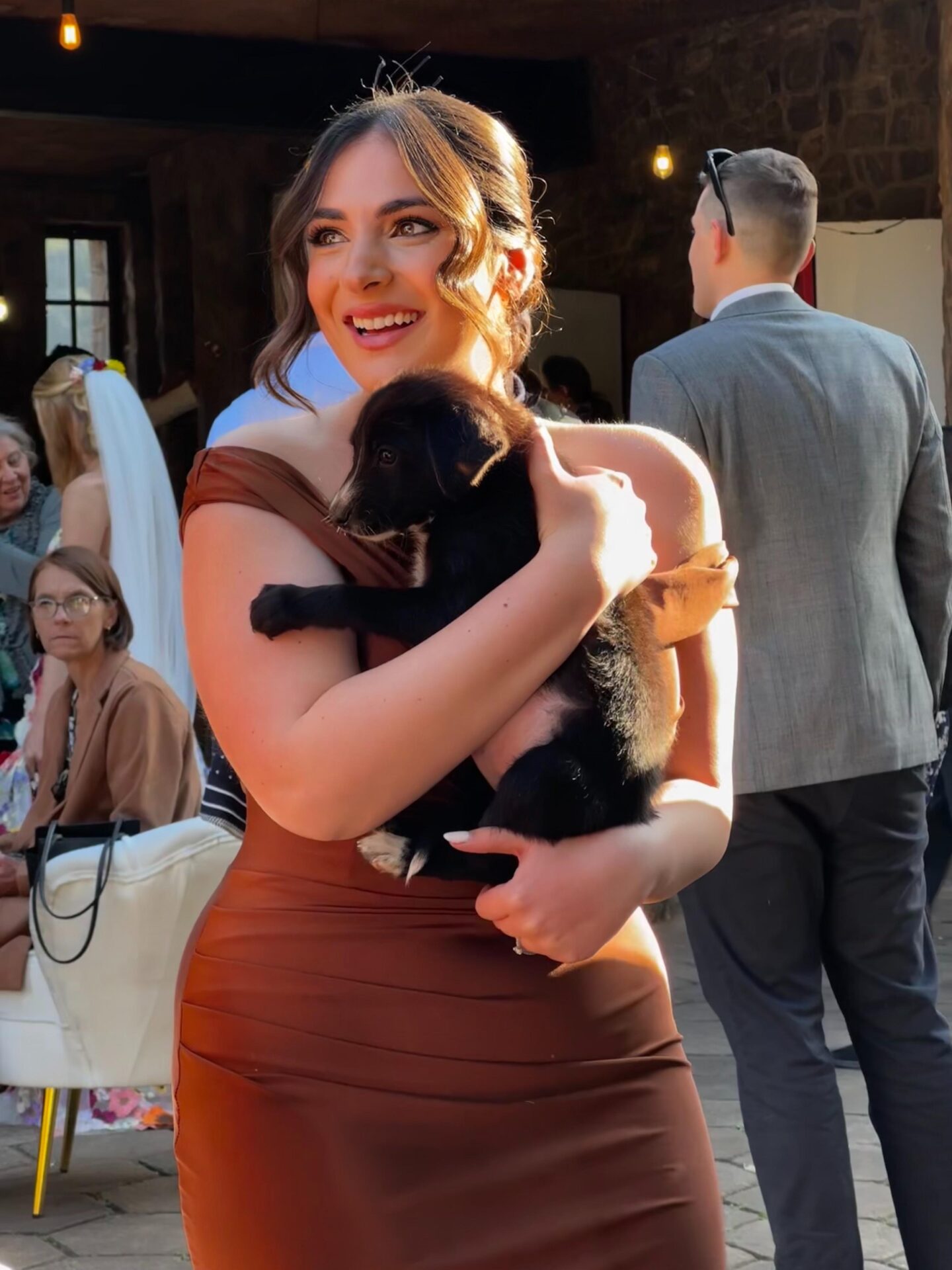 The bride’s oldest friend, Nas, who had flown in from Johannesburg, added the cherry on top, pledging to adopt two pups!