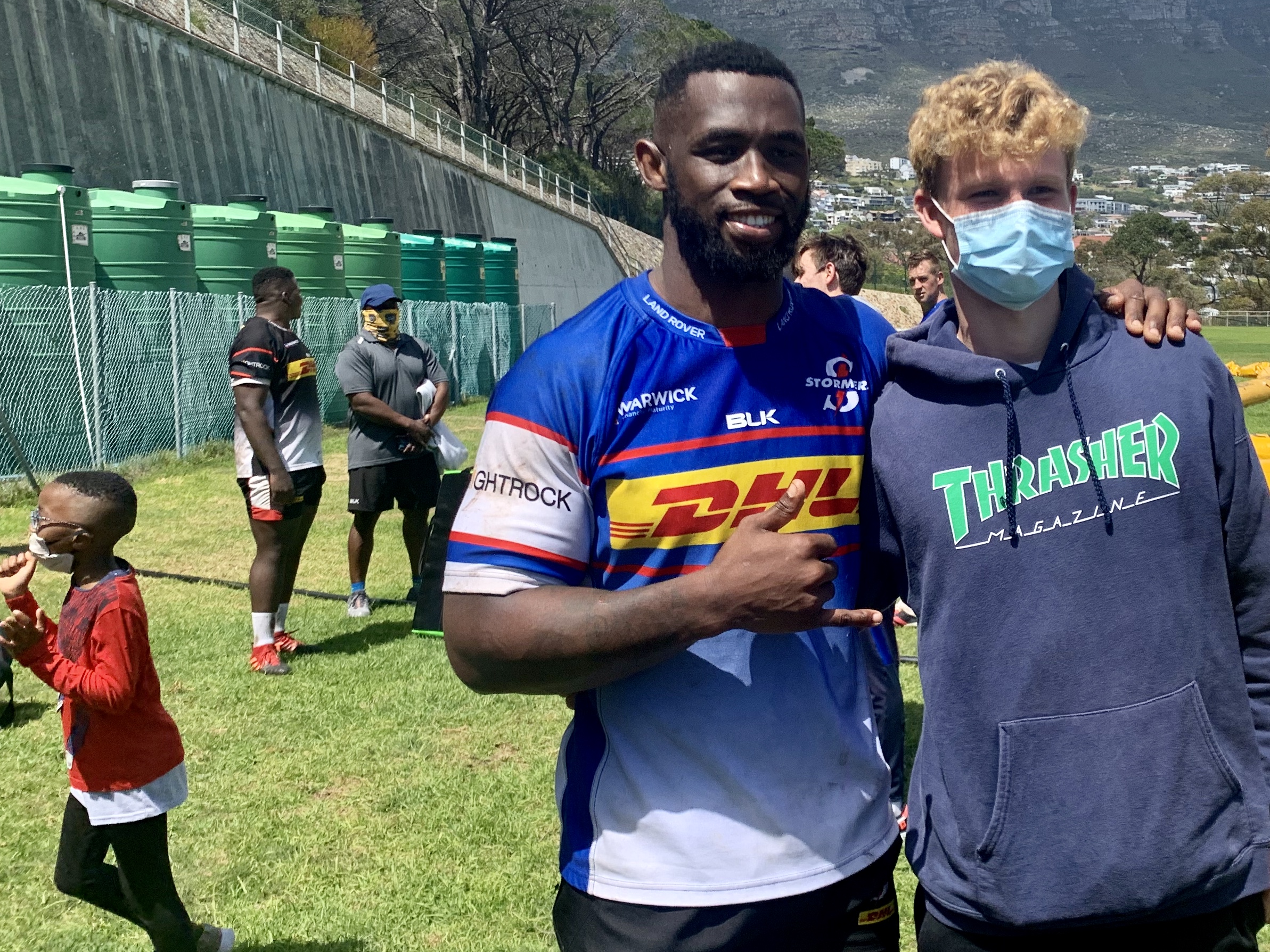 Thomas Symons, photographed with Siya Kolisi below, is currently training with the WP Elite Squad and was excited to meet the entire team.
