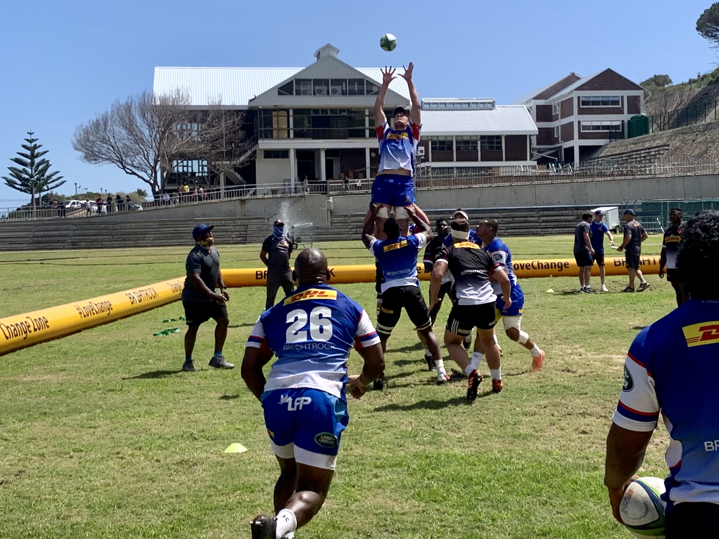 Cape Town, South Africa (09 October 2020) – The DHL Stormers popped in at the Camps Bay High School‘s Kudu Park for a training session. The team mingled with the school’s hopeful rugby team and then got busy with drills.