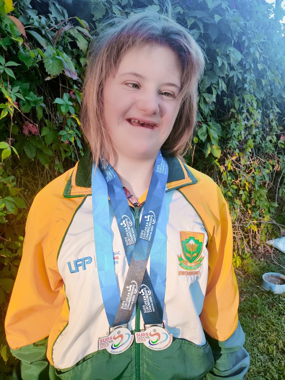 18-year-old Minke Janse van Rensburg might as well make medals her middle name after she earned multiple victories in gold, silver and bronze at the Down Syndrome European Championships for her many epic swims!