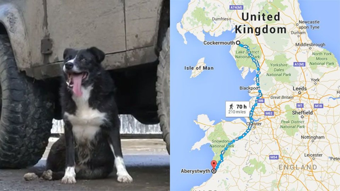 In what is the ultimate act of love, a homesick sheepdog has travelled almost 400km, from Cumbria to the small Welsh village of Penrhyncoch, to get home to his family. …