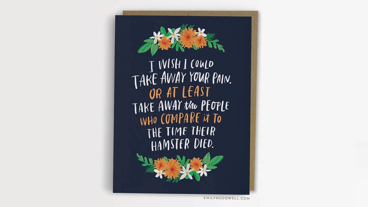 Historically, she says, sympathy cards tend to read “like they were written by someone who got the assignment to write a card about X.” That’s exactly what she didn’t want to do when creating her line. Based on the response, it’s safe to say she succeeded.
