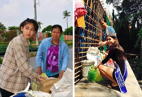After winning Miss Thailand 2015, 17 year-old Khanittha “Mint” Phasaeng went back to visit her single mom and knelt before her, showing the utmost respect to the woman who collected and recycled trash her whole life to raise her.
