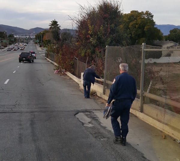 Engine 6 of the City of Riverside Fire Department in California was returning from training when they spotted an elderly man walking slowly along the freeway barefoot.