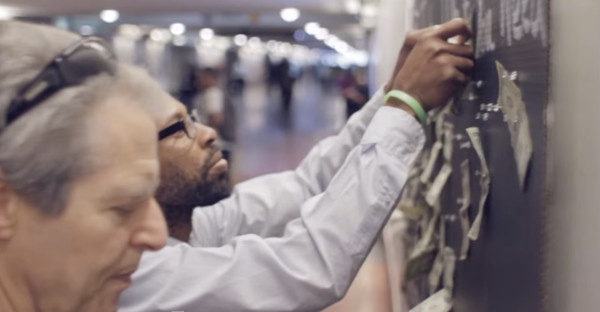 If you were walking through a busy train station and saw a bulletin board full of dollar bills, what would you do?